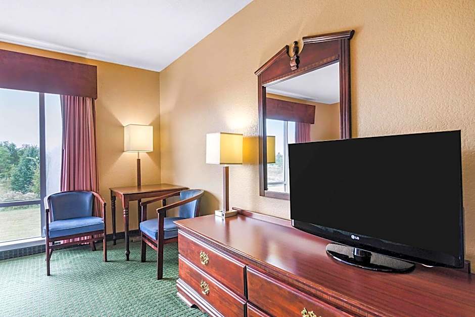 The suite is furnished with a desk and a seating area. The unit has 2 beds.